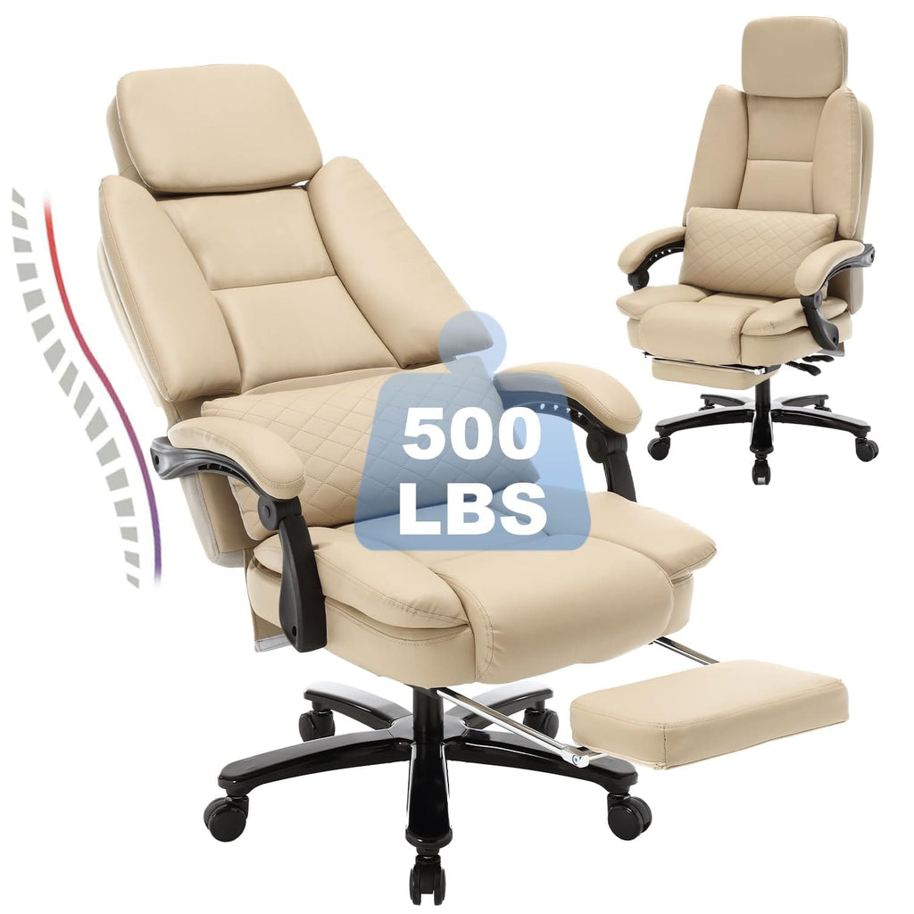 JONPONY 500lbs Big and Tall Office Chair Wide Seat for Heavy People with Quiet Wheels Heavy Duty Metal Base High Back Larger Size PU Leather Executive Office Chair with Footrest Back Reclining,Black