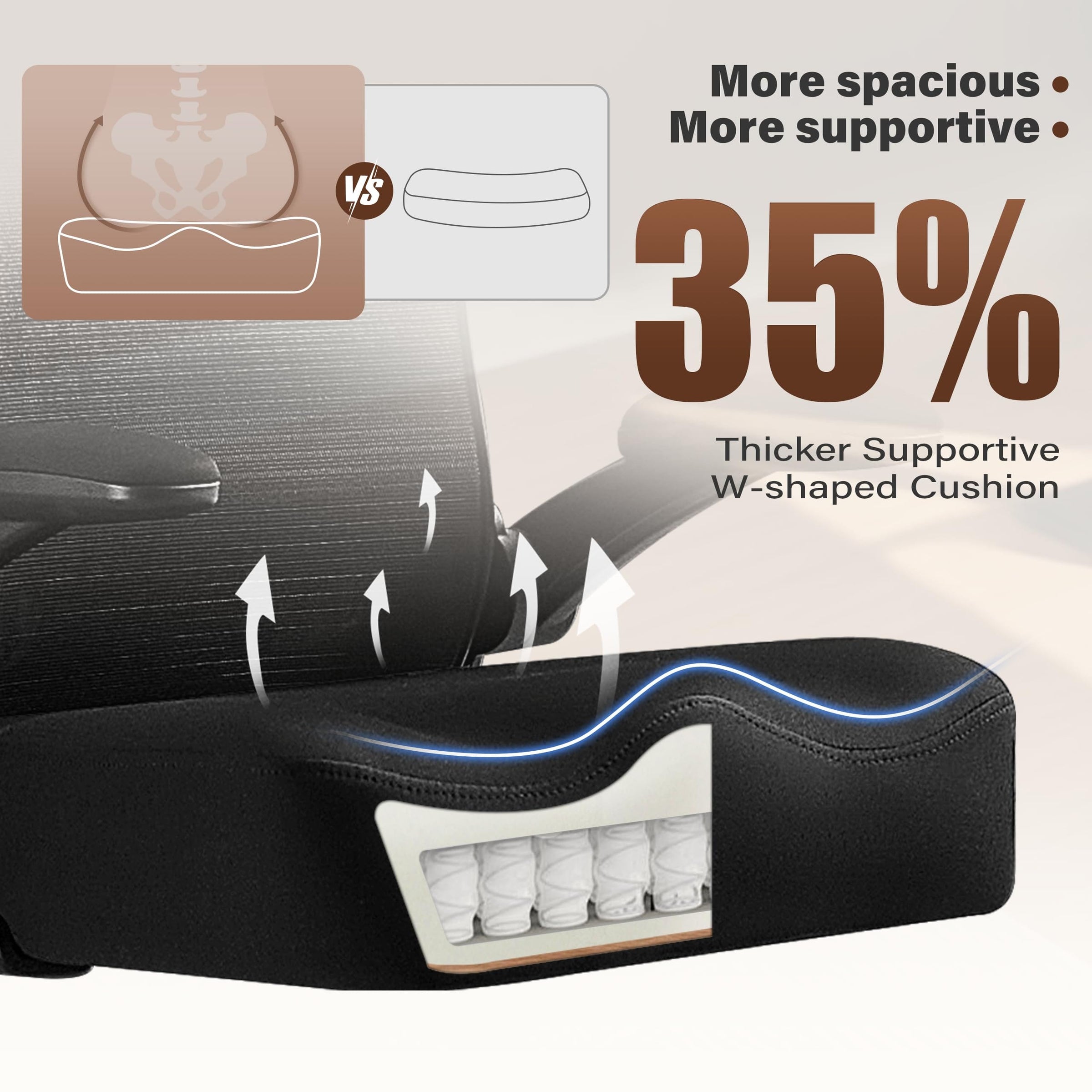 - Thick 4.33" W-shaped Cushion Made for Comfort: Still worried about not having the right office chair for you? Don't worry, please sit on our 4.33“ thick W-shaped cushion with high elasticity supportive foam and 19.69” extra deep seat to provide optimal support for your thighs, allowing you to experience unparalleled comfort. The superior breathable mesh backrest molds to your spine and back, keeping you fresh and the soft padded armrests take your creative workspace to the next level.