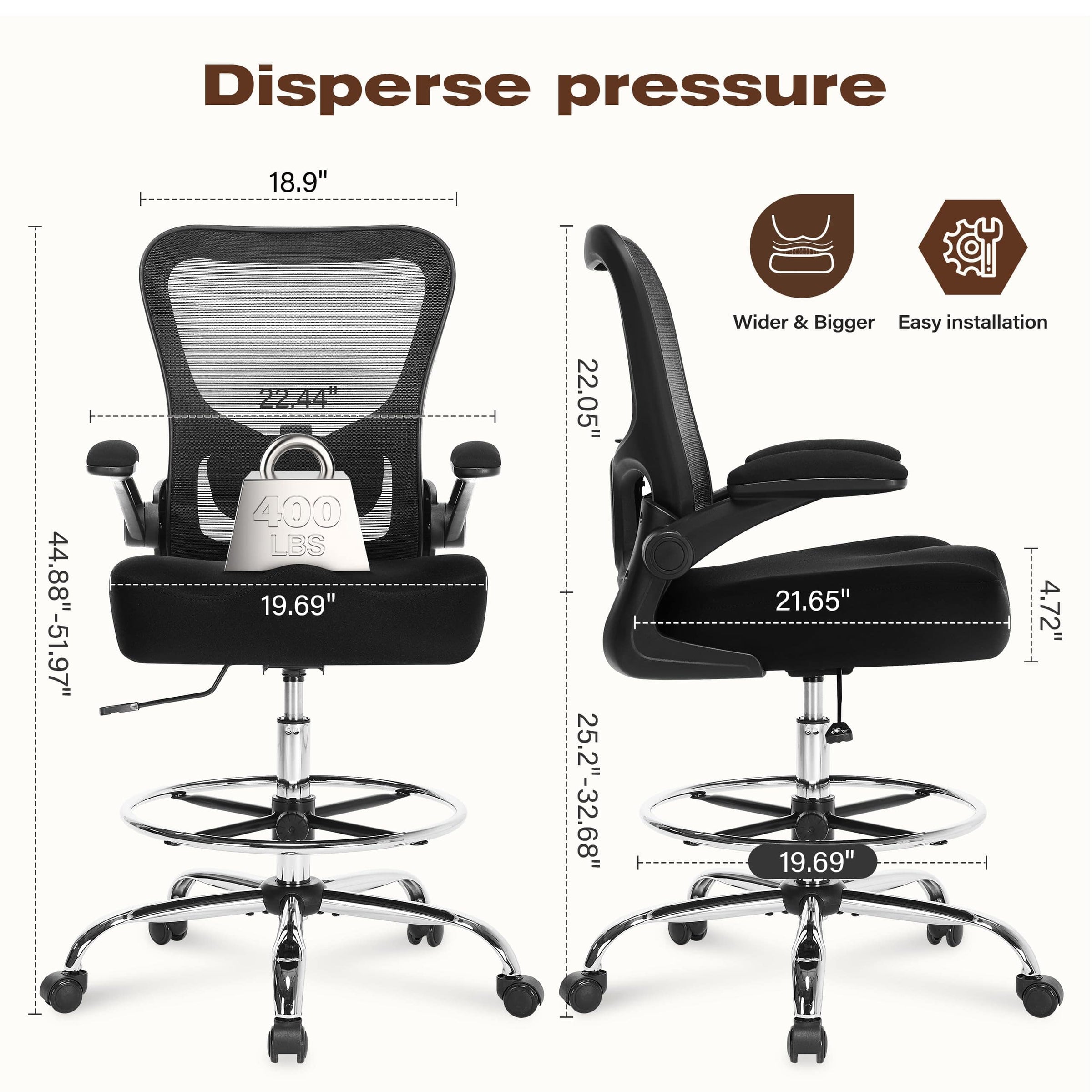 - Versatile Standing Desk Chair with Footrest Ring: Explore our versatile standing desk chair that is ideal for creativity and productivity. The footrest ring design ensures that you stay free during long hours of work and specialize in your creations. The large diameter adjustable footrest ring takes the pressure off your feet and frees your legs from bending. If you are an artist, or a family with high kitchen countertop or standing desk, don't hesitate, this chair will easily fit your needs.