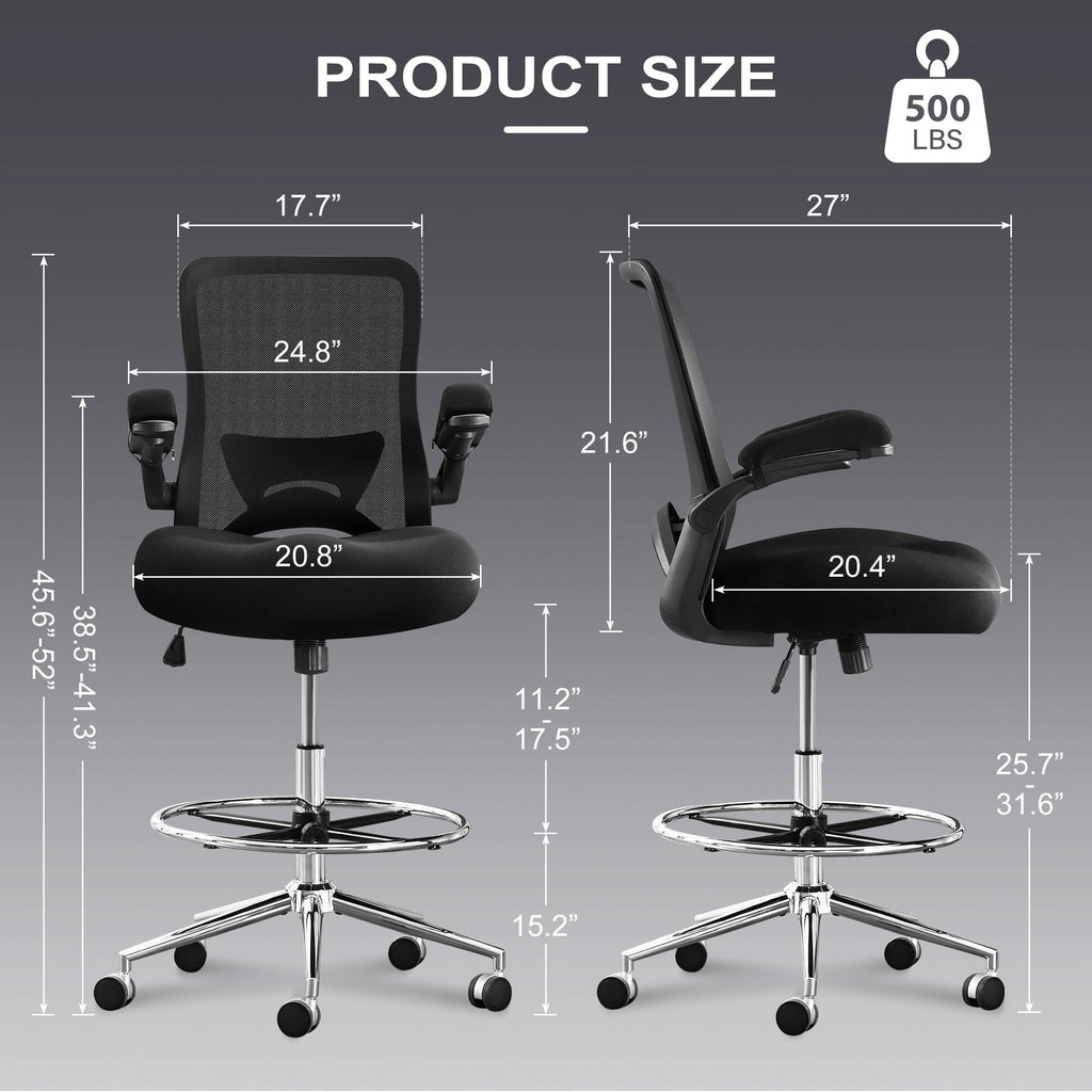 JONPONY 500lbs Tall Drafting Chair for Standing Desk with Flip-up Armrests, Pressure Locking Casters, W-Shape Thicken Cushion, Breathable Mesh Extended Height Office Chairs