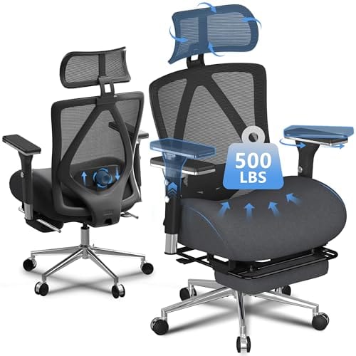 JONPONY Big and Tall Office Chair with Footrest, Ergonomic Mesh Office Chair with Thicken Wide Cushion, 4D Armrest, Adjustable Lumbar Support & Headrest
