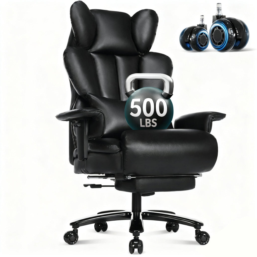 JONPONY Big and Tall Office Chair with Footrest, Executive Office Chair with Adjustable Lumbar Support, Dual Rubber Wheels, Ergonomic High Back Computer Chairs