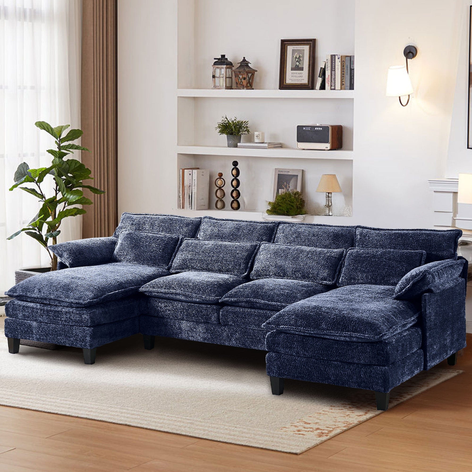 - Sturdy U-Shaped Corner Sofa gives the cloud sofa a sophisticated and luxurious look, and is soft and skin-friendly. Contemporary living room sectional sofas are built on a sturdy hardwood base, durable memory foam cushions are embedded into the fabric, and black plastic legs perfectly support the entire sofa for long-term use.