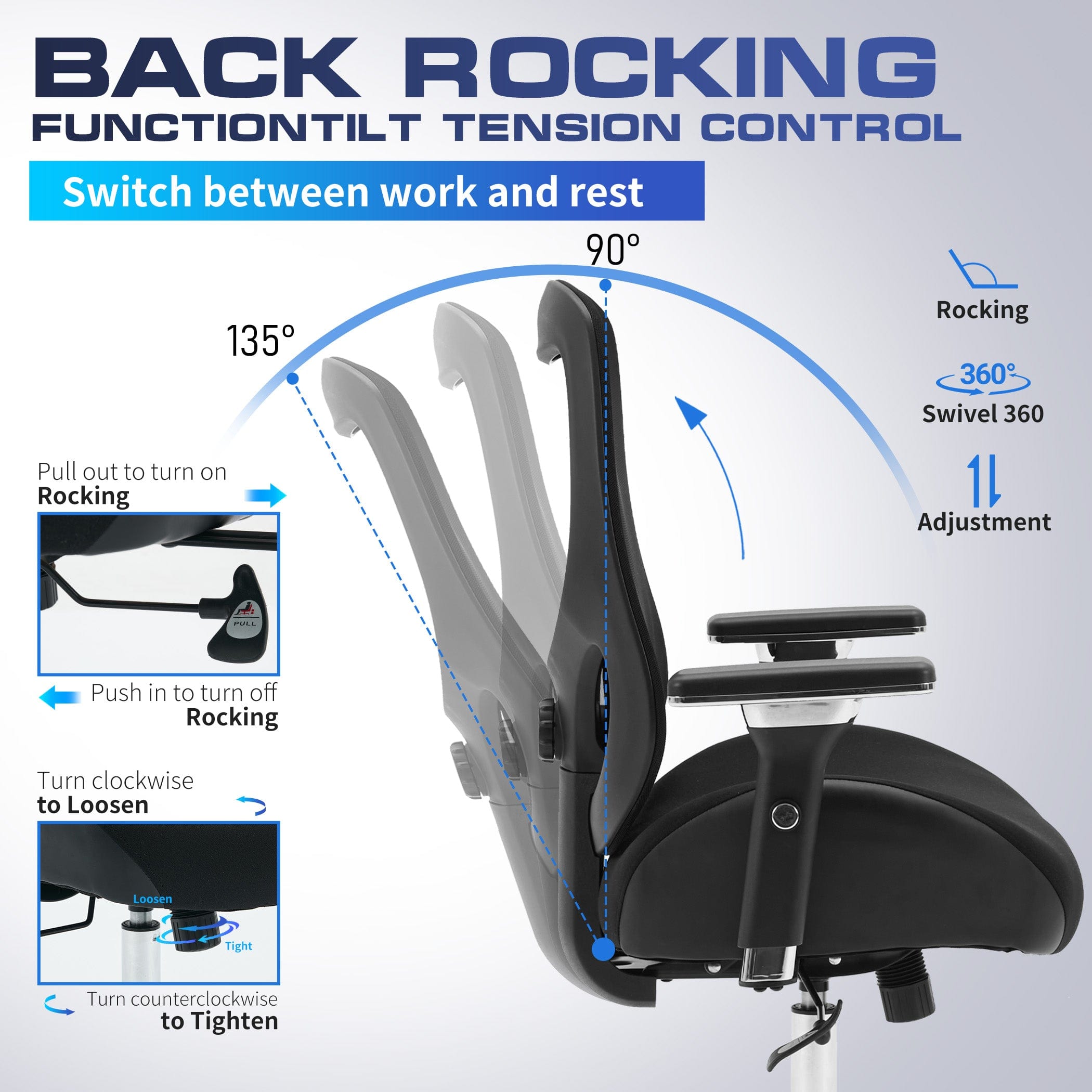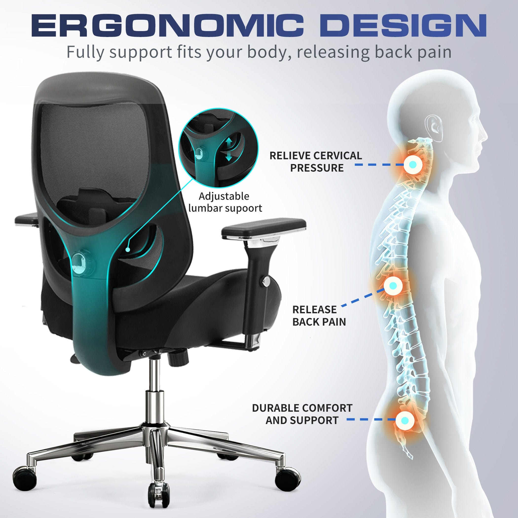 • ๐—œ๐—ป๐˜ƒ๐—ฒ๐˜€๐˜ ๐—ถ๐—ป ๐—ข๐—ณ๐—ณ๐—ถ๐—ฐ๐—ฒ ๐—–๐—ต๐—ฎ๐—ถ๐—ฟ ๐—–๐—ผ๐—บ๐—ณ๐—ผ๐—ฟ๐˜ ๐—˜๐˜ƒ๐—ฒ๐—ฟ๐˜†๐—ผ๐—ป๐—ฒ ๐——๐—ฒ๐˜€๐—ฒ๐—ฟ๐˜ƒ๐—ฒ๐˜€:ย Thick padding complements the breathable mesh back, offering full-body support while effectively distributing pressure.ย  ย We proudly recommend the JONPONY 700 โ€” the most comfortable office chair for your workspace.ย  ย Featuring an oversized U-shaped seat cushion, it creates a personalized comfort zone, while the premium spring system ensures long-lasting resilience and durability for daily use.๐—™๐˜‚๐—น๐—น๐˜† ๐—”๐—ฑ๐—ท๐˜‚๐˜€๐˜๐—ฎ๐—ฏ๐—น๐—ฒ ๐Ÿฐ๐—— ๐—”๐—ฟ๐—บ๐—ฟ๐—ฒ๐˜€๐˜๐˜€:ย Say goodbye to bulky, fixed armrests and hello to ultra-versatile 4D adjustability.ย  ย Our redesigned armrests move in multiple directions, allowing you to find the perfect position to enhance comfort and productivity.ย  ย Thick padding provides reliable support for your arms and elbows, while the sleek matte black finish seamlessly fits into any modern home or office setting.๐—Ÿ๐˜‚๐—บ๐—ฏ๐—ฎ๐—ฟ ๐—ฆ๐˜‚๐—ฝ๐—ฝ๐—ผ๐—ฟ๐˜ ๐—ณ๐—ผ๐—ฟ ๐—”๐—น๐—น-๐——๐—ฎ๐˜† ๐—ฅ๐—ฒ๐—น๐—ถ๐—ฒ๐—ณ:ย Tired of office chairs that make you slouch and cause back pain?ย  ย The JONPONY office chair features built-in 2D adjustable lumbar support, so you can easily customize back support to fit your posture and needs.ย  ย Whether you're leaning back in thought or sitting forward to focus, the ergonomic design conforms to your body and relieves pressure from your lower back โ€” making long workdays more comfortable.๐—˜๐˜…๐—ฒ๐—ฐ๐˜‚๐˜๐—ถ๐˜ƒ๐—ฒ ๐—–๐—ต๐—ฎ๐—ถ๐—ฟ ๐— ๐—ฎ๐—ฑ๐—ฒ ๐—ณ๐—ผ๐—ฟ ๐—•๐—ถ๐—ด ๐—š๐˜‚๐˜†๐˜€:ย Looking for a chair that truly supports you?ย  ย Our executive office chair is designed with durability and comfort in mind.ย  ย It accommodates users up to 700 lbs and features a customizable backrest, adjustable height, and 4D armrests for a tailored seating experience.ย  ย With reinforced construction and a solid base, this chair adapts to your movements and ensures long-term reliability โ€” ideal for big and tall users.๐—š๐—ฒ๐˜ ๐—ฌ๐—ผ๐˜‚๐—ฟ ๐—˜๐—ฟ๐—ด๐—ผ๐—ป๐—ผ๐—บ๐—ถ๐—ฐ ๐—ข๐—ณ๐—ณ๐—ถ๐—ฐ๐—ฒ ๐—–๐—ต๐—ฎ๐—ถ๐—ฟ ๐—ง๐—ผ๐—ฑ๐—ฎ๐˜†:ย Say goodbye to squeaky, uncomfortable chairs.ย  ย Our JONPONY executive chair is built to last, BIFMA and SGS tested for safety and durability.ย  ย Quiet, smooth-rolling wheels protect your floors, and a sturdy build guarantees long-term performance.ย  ย We back our product with a one-year.