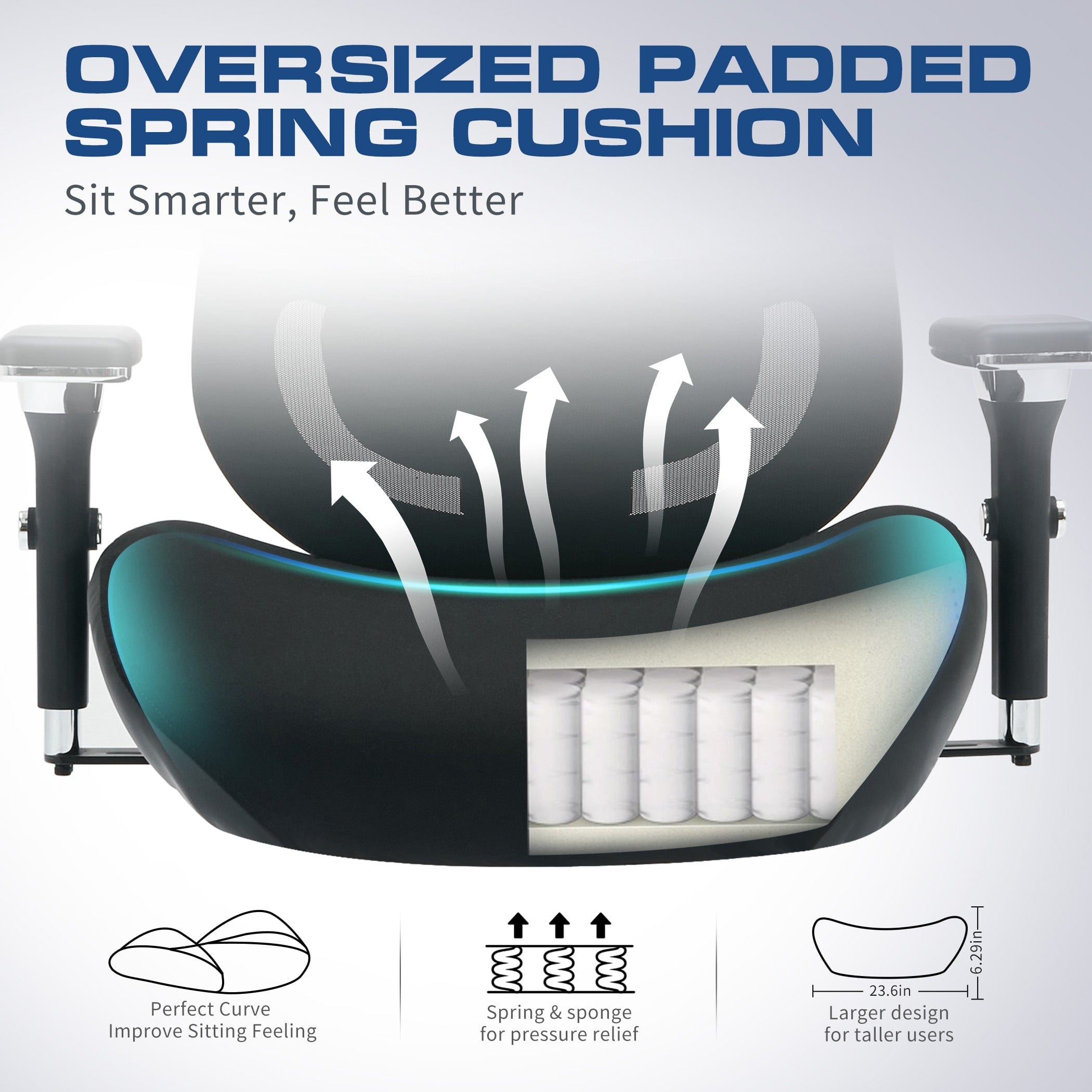 • Thick padding complements the breathable mesh back, offering full-body support while effectively distributing pressure.ย  ย We proudly recommend the JONPONY 700 โ€” the most comfortable office chair for your workspace.ย  ย Featuring an oversized U-shaped seat cushion, it creates a personalized comfort zone, while the premium spring system ensures long-lasting resilience and durability for daily use.