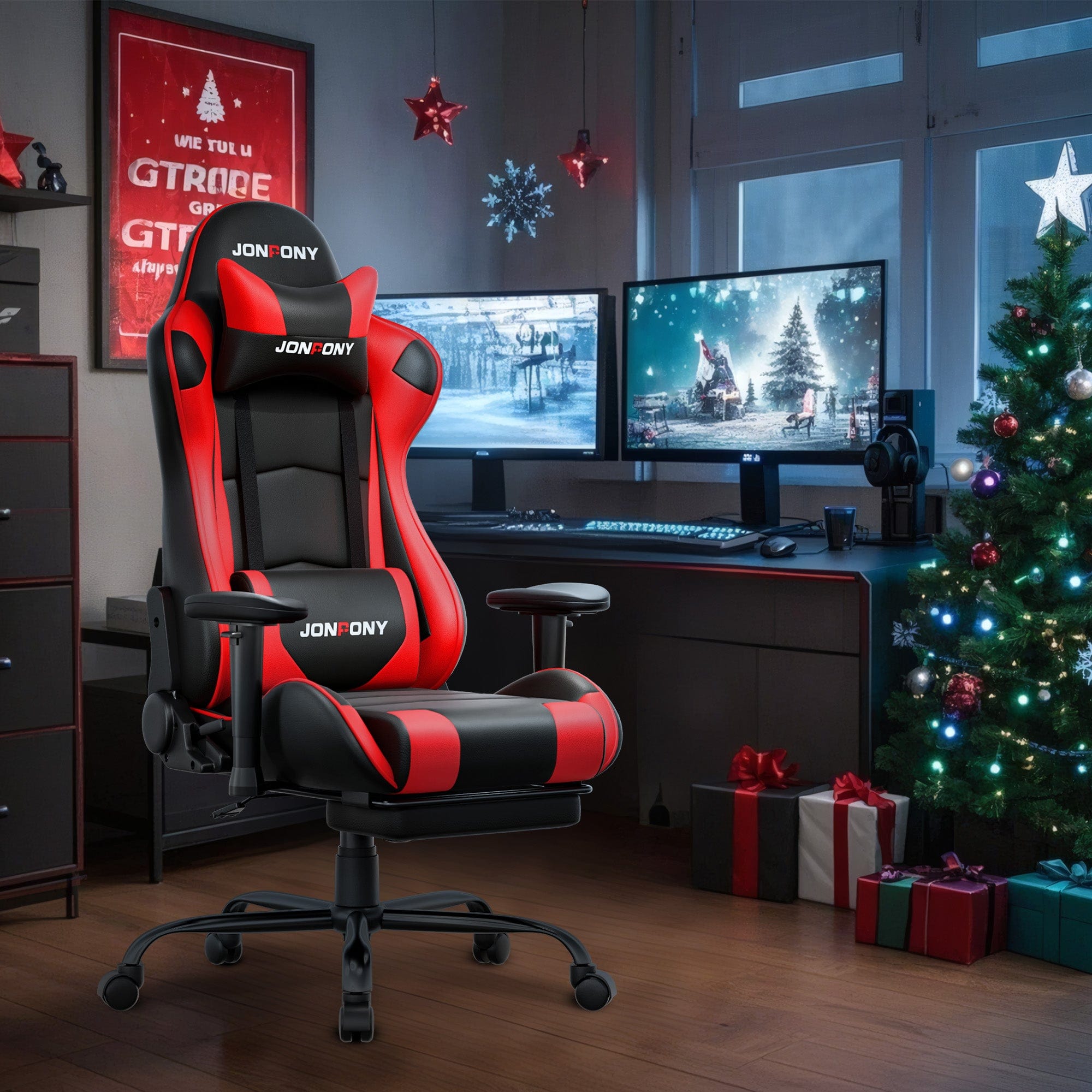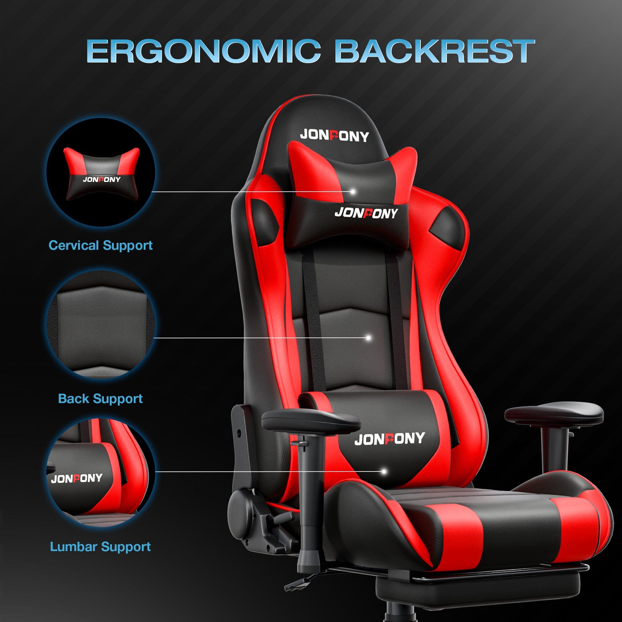 - 【Advanced Spring Cushioning】- The JONPONY gaming chair features advanced spring cushioning that elevates the user experience by balancing hip pressure distribution during seating. It also incorporates high-density foam sponge with exceptional rebound properties, adapting seamlessly to changes in sitting posture. The premium cushion material ensures long-lasting elasticity, transforming your gaming sessions into moments of pure enjoyment and relaxation.