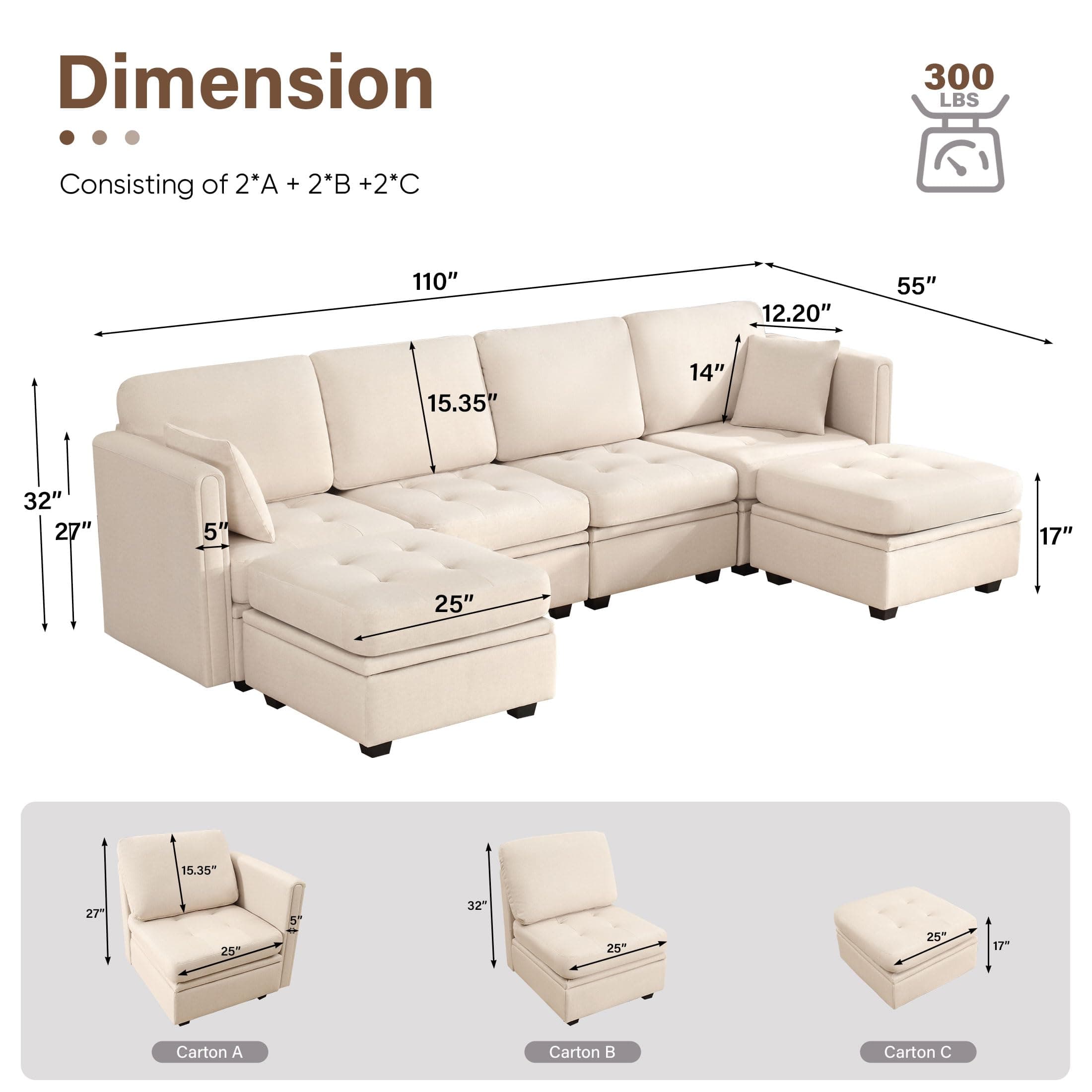 - 【LARGE STORAGE SPACE】Each module can store items such as pillows, blankets, books, toys, clothes or sundries. It is very convenient to use and keeps your room tidy. You can easily open the sectional sofa cover to lift it up. The spring can easily assist lifting. It is safer and more convenient. You don't have to worry even if your children use modular sofa.