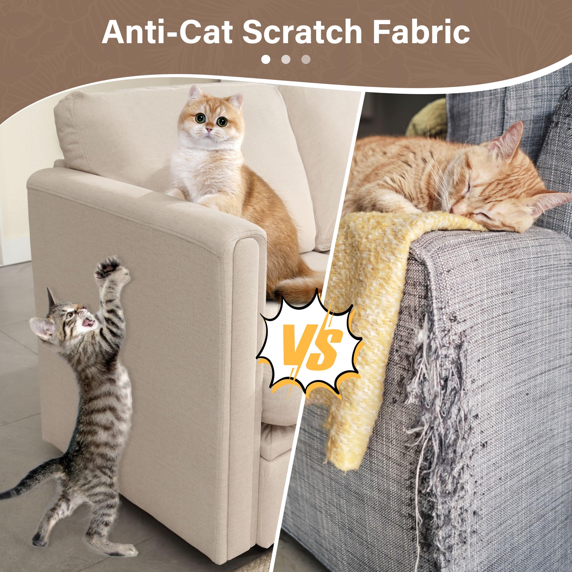 - 【CAT-SCRATCH-PROOF FABRIC】The sectional sleeper sofa fabric of the modular sofa is soft and skin-friendly. It also has a cat-scratch-proof function to prevent damage caused by pet scratches. It is more durable and solves the troubles of pet-raising families. The cushion is a combination of sponge and spring pack, comfortable and elastic. Each backrest is equipped with a soft cushion, and designed with an inclined angle, which can make the sofa fit the human body better and more relaxing.