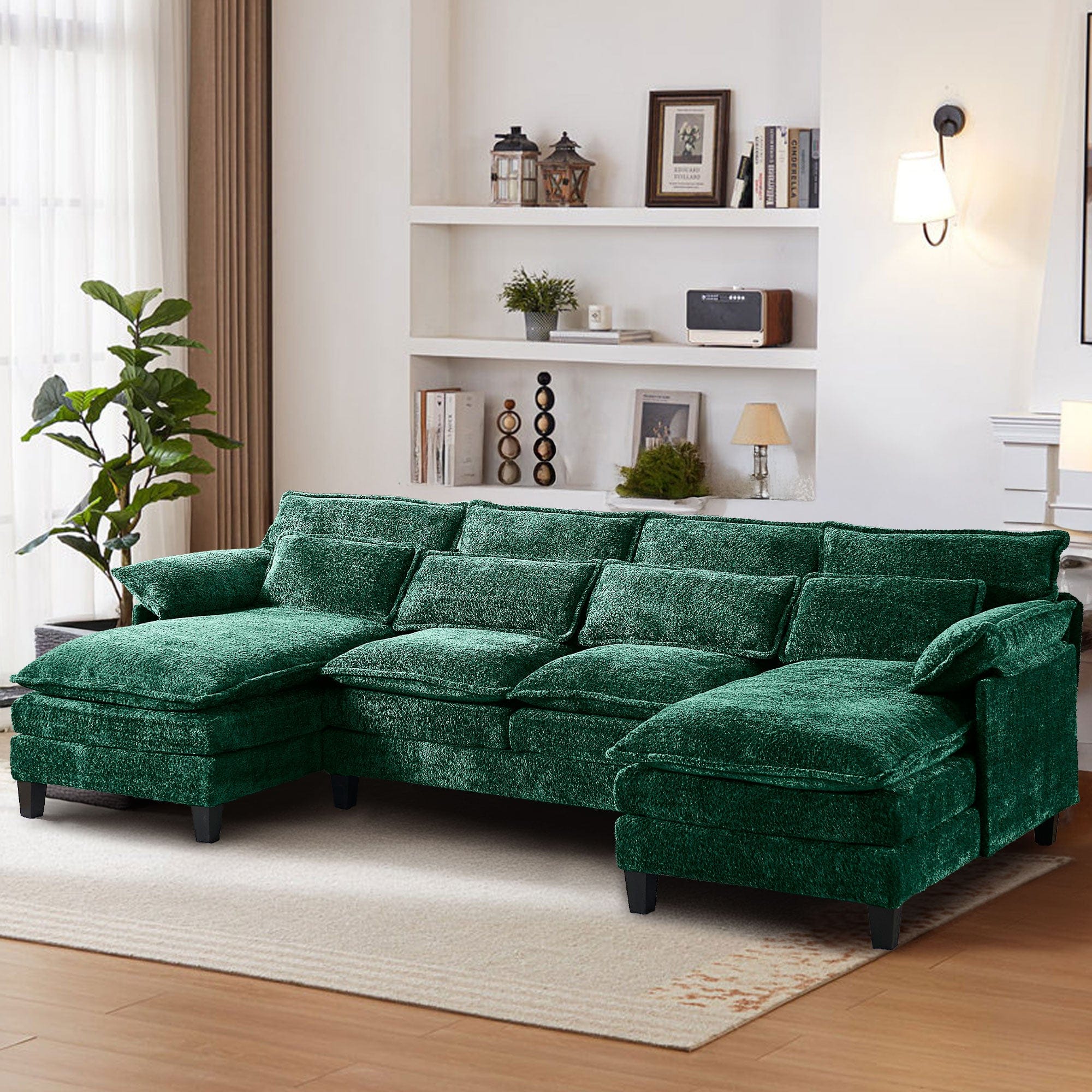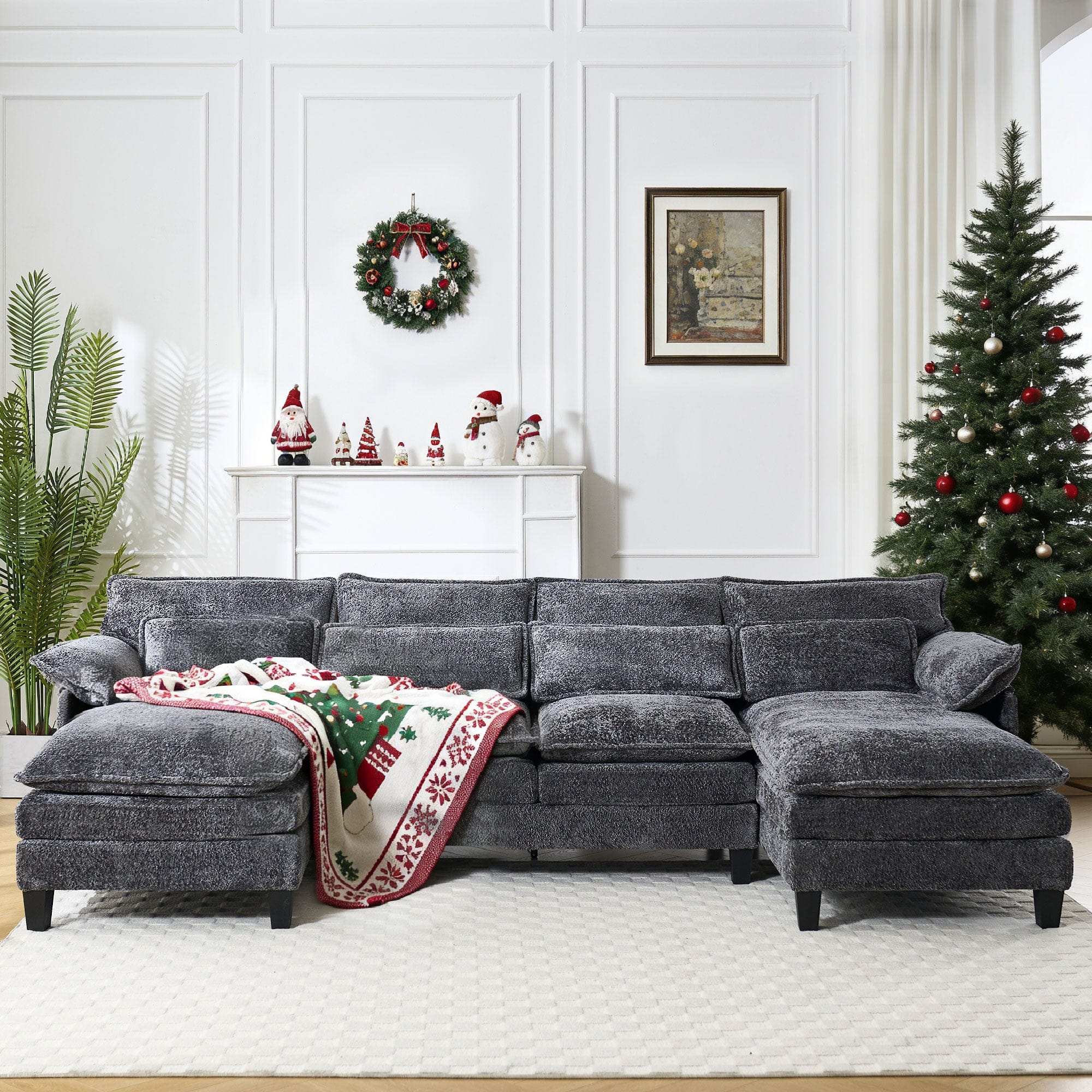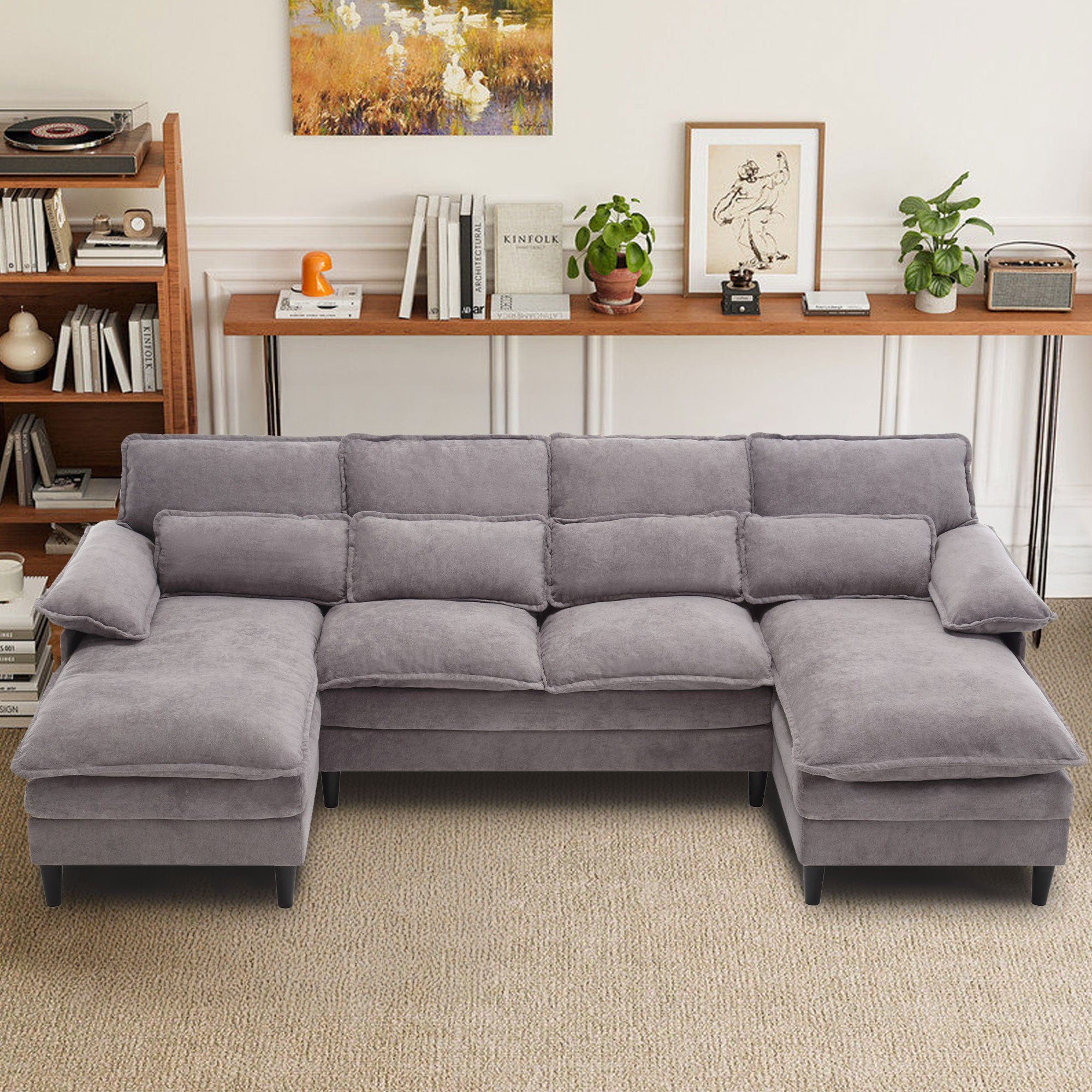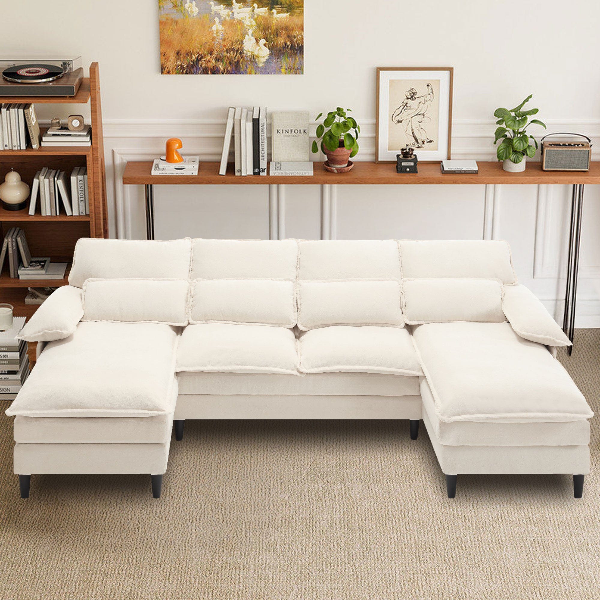 Sturdy U-Shaped Corner Sofa gives the cloud sofa a sophisticated and luxurious look, and is soft and skin-friendly. contemporary living room sectional sofas are built on a sturdy hardwood frame, durable memory foam cushions are embedded into the fabric, and black plastic legs perfectly support the entire sofa for long-term use.